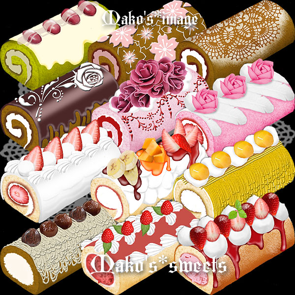 ロールケーキ。コチラ 切った単品 というよりも、ロール1本 で描いているんですね。主に。